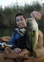 ポイントについてルアーを投げ流れをチェックすると、流れはほとんどない。景色もいいので早速用意して入水する。入水すると結構水が冷たい!膨らんだ想像が少ししぼむ。投げ進んでいっても30分以上バイトは全くなく、想像は更にしぼむ。40分くらいした頃、マサリンがバドで35くらいのを釣り、またまたモチベーションが上がる!!少しすると逆側で投げてる友達にも出たがバラシてしまう。しかし水は冷たくバイトはそれ以来ない。その先に良い感じの太さの流れもほとんどない流れ込みがあり、そこを友達が攻めるがバイトはなし。その逆側を投げてたわたくしのダンガンのダートな早いドックウォークで始めてのバイト、フッキング!しかし手前で痛恨のバラシ、推定30中から後半、モチベーションがまた上がり更に進んでいくと水温も上がりバイトもそこそこ出てきた。またまたマサリンがまさにホットベリーな36をキャッチ!太いと短くてもデカイです!!