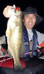 その後ショボイバイトがありのらないが、集中力は持続する。そしてまたもダンガンで、着水ワンアクションでガッヴァ!バシャバシャバシャ!!と凄い引き!デカイ!しかしバラシてしまう、おそらく余裕の40UPで推定45クラス、興奮と、落胆が入り交じるが、何もないより遥かに楽しい!その後マサリンは連チャンで30代を何本か釣り、僕は先に投げ進むと、怪しいエグレを発見、もう日も落ちてかなり暗いが、集中してフッカーを1発でナイスキャスト!そんでワンアクション!ジュボ!バシャバシャバシャ!っとフッキングしたとたん凄い暴れ方!マジで!雷魚か?と思いながらも捲くが凄い引き!デカイ!寄せてくると白い魚体が見え跳ねる!ダブルフックが前後2本ともかかっていたのできっちりキャッチし45UPの良い魚!!その後はぱったりバイトはなくなったが良い感じのこの川また来るでしょ!!
