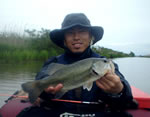 風が強くどこも厳しいので、昼飯を食べて初日見た野池へ行ってみると見えバスがいたのでとりあえず入水。
