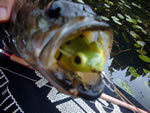 わたくしは10cm代の小バスを英才教育し、32cm位の課長クラスを3尾ほど 釣ったが、40代の部長クラスにはお目にかかれなかった。水草の上のフロッグへの出方は激しく結構楽しめたフロッグ丸のみです。