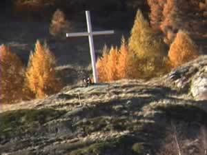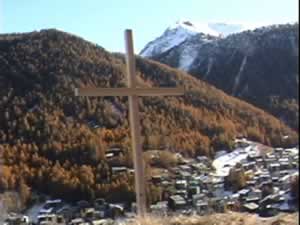 スイス日記 〜十字架〜 ツエルマット町のある山の山頂の途中に「十字架」と呼ばれる場所が有ります。その場所から、ツエルマット町全体を眺められる場所が有ります。山頂には、夜は白く光り、昼間は緑の中に白く目立つ大きな十字架が有ります。 その十字架に「行こう!」となり皆で(日本人10人位)で行く事にしました! 残り少ないスイス滞在の中のあるオフの日、、昼間行った事がある人に聞くと、、「昼間も違った感じで良いよ!」との事で、、「帰る前に絶対行こう!」と決めていて、、が、、、延ばし延ばしになって、、前に行った人達を誘うと、、 皆で登る山道は、楽しいのですが、、異常に十字架までが遠く感じて、、「止めようかな><」とも一瞬思いましたが、「いけない!いけない!」と思いながら、無事に頂上十字架に到着!!! 昼間の景色は、言われたとおり夜と全く違い色々な家の作りやマッターホルンなどの雪景色が見えまたもや綺麗でした! そして、、色々とこれからの事を考えようと思ったのですが、、景色を満喫し、ビデオパーコで終わっちゃいました!!しかも、、1時間位居ました、、でも「本当はもっと居れるかな」って感じでした!! 地上に戻り、皆に「独り十字架」を言うと「今度行くって行ったのに〜」と言われましたが、、一人で行って凄く良かったです!!そして、、地上からは十字架が綺麗に見え、、「でも、、私が十字架所に居たって事は、地上からは丸見えじゃん!!」と恥ずかしくなりましたが、