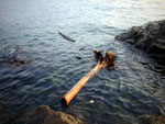 島の頂上には[淡島神社]があると言うので『行こう!』と、決めて登っていると→途中には『クマに注意』『たぬきに注意』など!4時間の道のりは、遠かった!!でも、いつでもフル満喫を求める私は『行くしかないでしょ!』って感じで、回りました!頂上に行くまでに『野良犬?』と、思いきや、たぬき発見!!野生のたぬきなんで?!かなり細く、犬の様でした!後で、聞くと、、ハクビシンだった!!