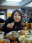 そこで、待ち合わせの時間の前に、買い物して、遅いお昼御飯って事で[ピビンネンミョン](辛いレーメン)&[マンドゥ](お得意の餃子)を、食べました!(カヨ!お決まりの[マンドゥ]をオーダーしてくれて、ゴマオ〜!!)