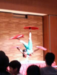 男性の徐領義さんは、かなり柔らかい体で、あり得ない位、グルグル回ってた!!踊りの後に、両はじに水を入れた入れ物を1本のヒモで、溢れない様に水平を保ちながら、、、また、グルグル踊って、天上高く投げては、キャッチして、、、凄かった!!