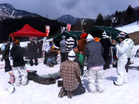 今年は、山に居ないので、初山で、板を持ってきてませんが、顔出しデスが、泣きそうに久しぶりに、皆さんに逢いましたっ↑↓ |