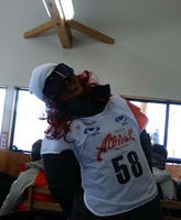 そして、[赤毛のジェシーちゃん] と、遊ぶ、大チャン(HEAD,間庭大輔)!!この人も、超ウケル人!こんなに遊んでいても、1発目から、[高いF900]を、ピタッと、決めて→この日も予選1位☆